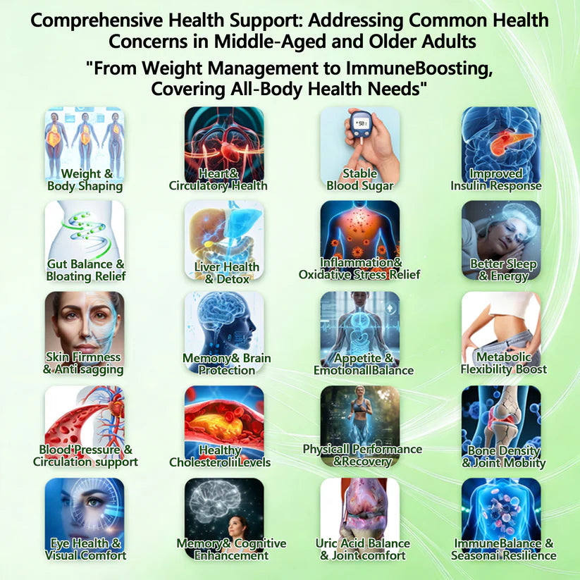 ✅ Benefícios adicionais: Este líquido pode tratar diversas complicações relacionadas à obesidade, como doenças cardiovasculares, diabetes tipo 2, artrite, obesidade/hipertensão, fígado gorduroso, recuperação da função hepática, névoa mental e declínio da memória, além de problemas de saúde feminina, incluindo desequilíbrios hormonais, sintomas da menopausa e problemas vaginais como coceira e odor.